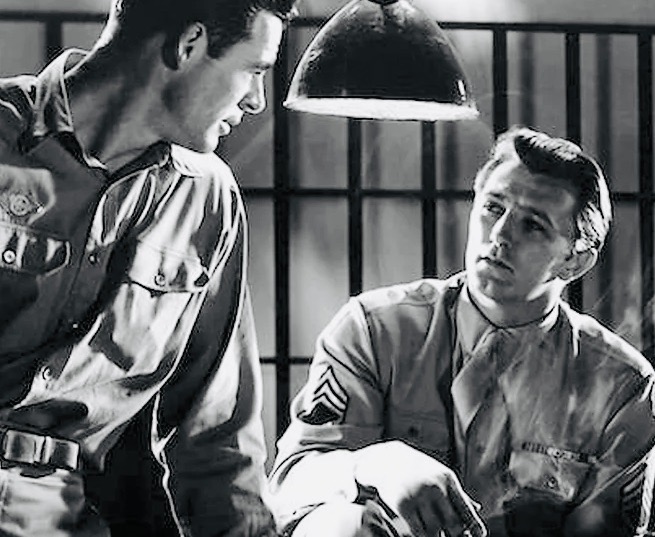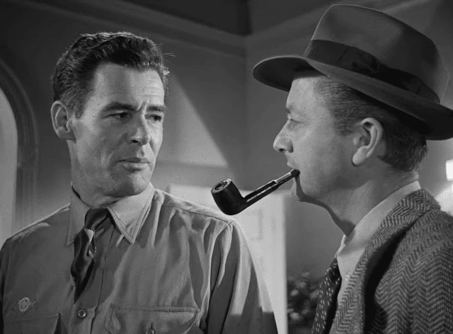 Montgomery (Ryan), another soldier, admits he encountered Samuels in a bar. In a revealing flashback, Montgomery is portrayed as a bigot. He refers to Samuels as a “Jew boy,” scathingly describing him as one of those “guys who played it safe during the war, scrounged around, keeping themselves in civvies, got swell apartments, swell dames … you know the kind. Some of them are named Samuels. Some of them got funnier names.”