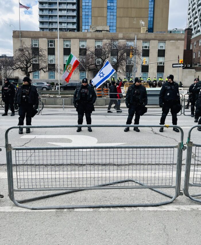 A coalition of local organizations — Canadian Voice of Women for Peace, the Labour Council of Toronto and York Region, the Iranian Canadian Congress and the Toronto Association for Peace and Solidarity — blasted the war as a violation of the United Nations charter and claimed that the United States and Israel were driven by “the desire to control energy resources, strategic trade routes … and spheres of influence.”