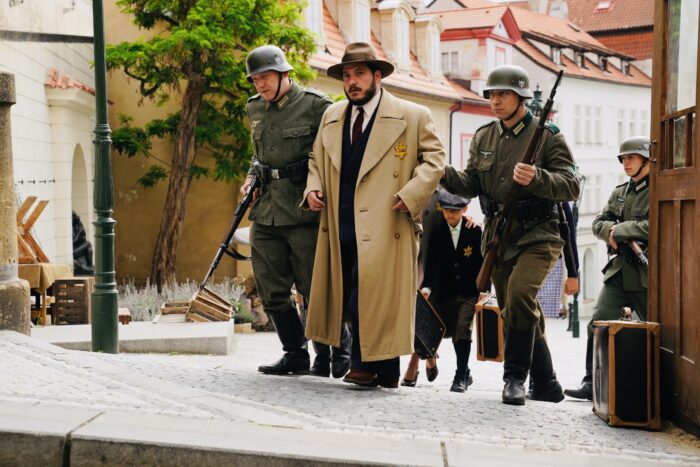 The incremental Nazi persecution of Czechoslovakia’s Jewish citizens is effectively chronicled in a few stark scenes. The young Heller (Luke David Blumm) is tormented and chased by a gang of neighborhood thugs. He and his family are compelled to wear the humiliating Nazi yellow star on their clothes. The Gestapo evicts them from their residence.